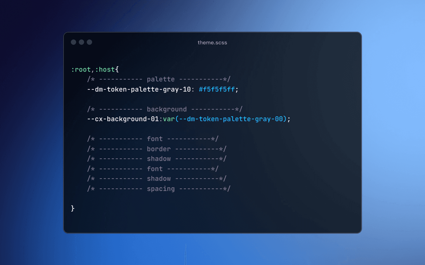 I engineered a flexible three-tier style variable system (Color Palette, Common Styles, and Component Tokens) to support multi-theme requirements.