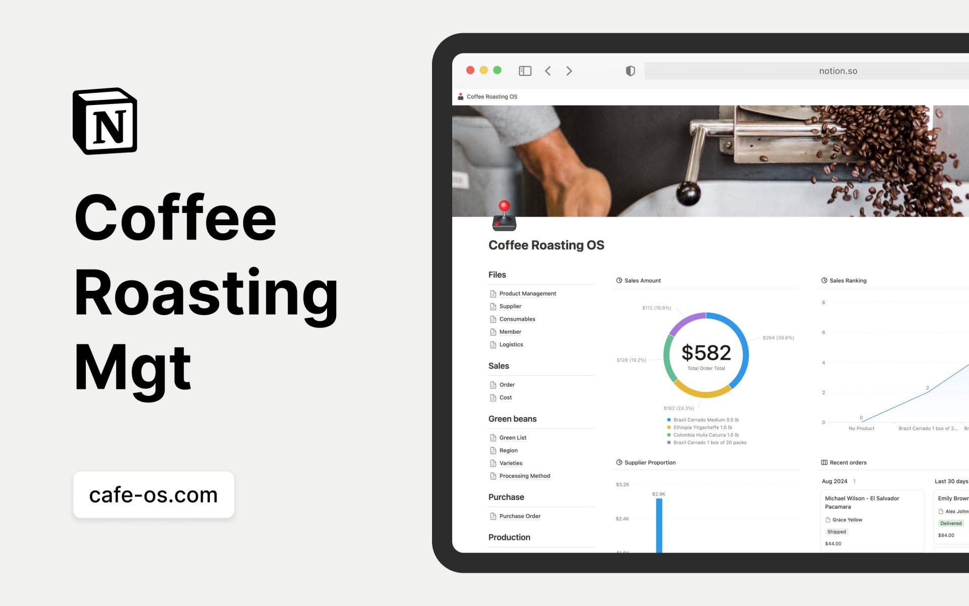 Coffee Roasting OS is a Notion-based template crafted for coffee professionals to streamline and organize all aspects of the coffee roasting business.